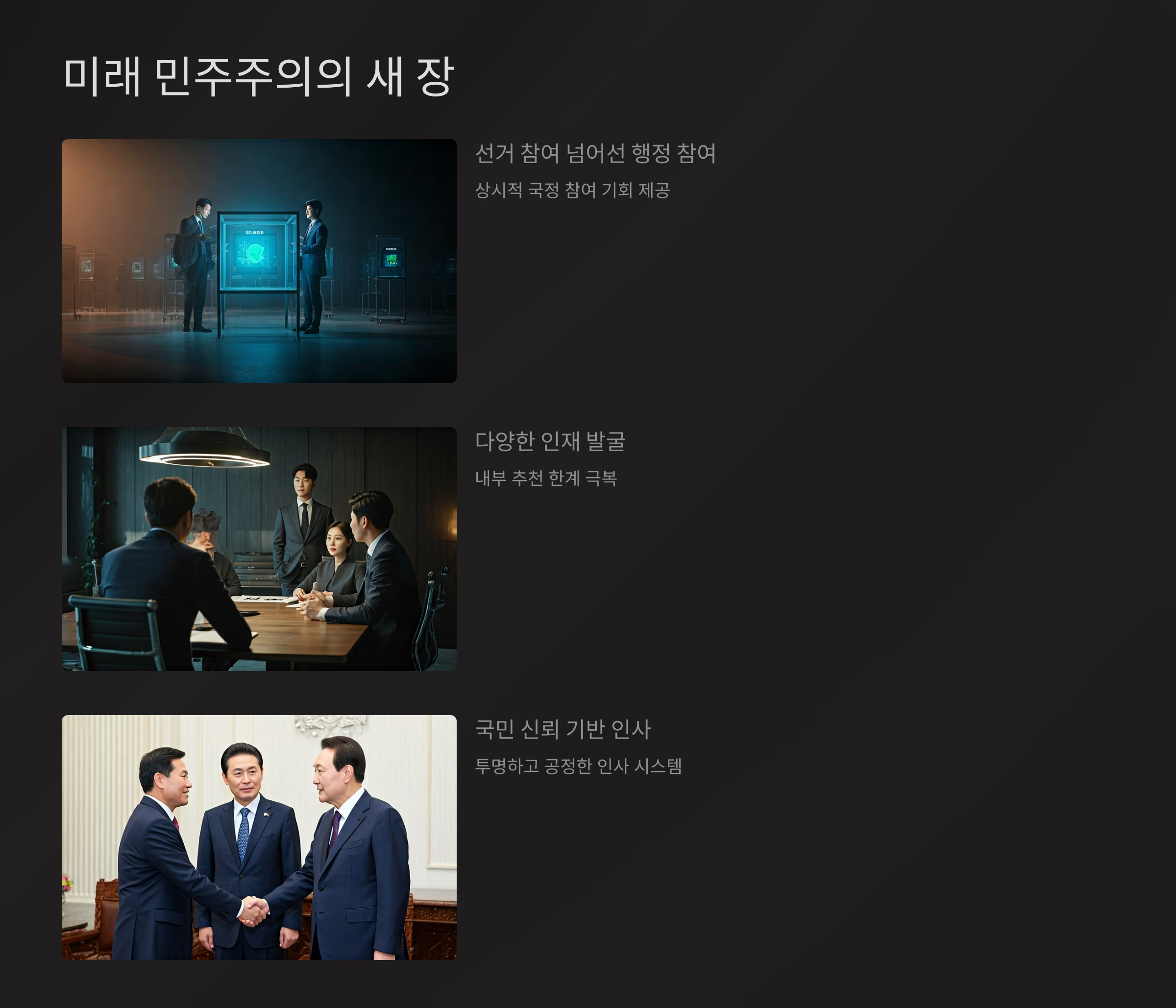 이는 단순히 인사 시스템의 변화를 넘어, 국민 주권 시대의 본격적인 참여형 민주주의를 실현하기 위한 상징적인 제도라고 할 수 있어요.