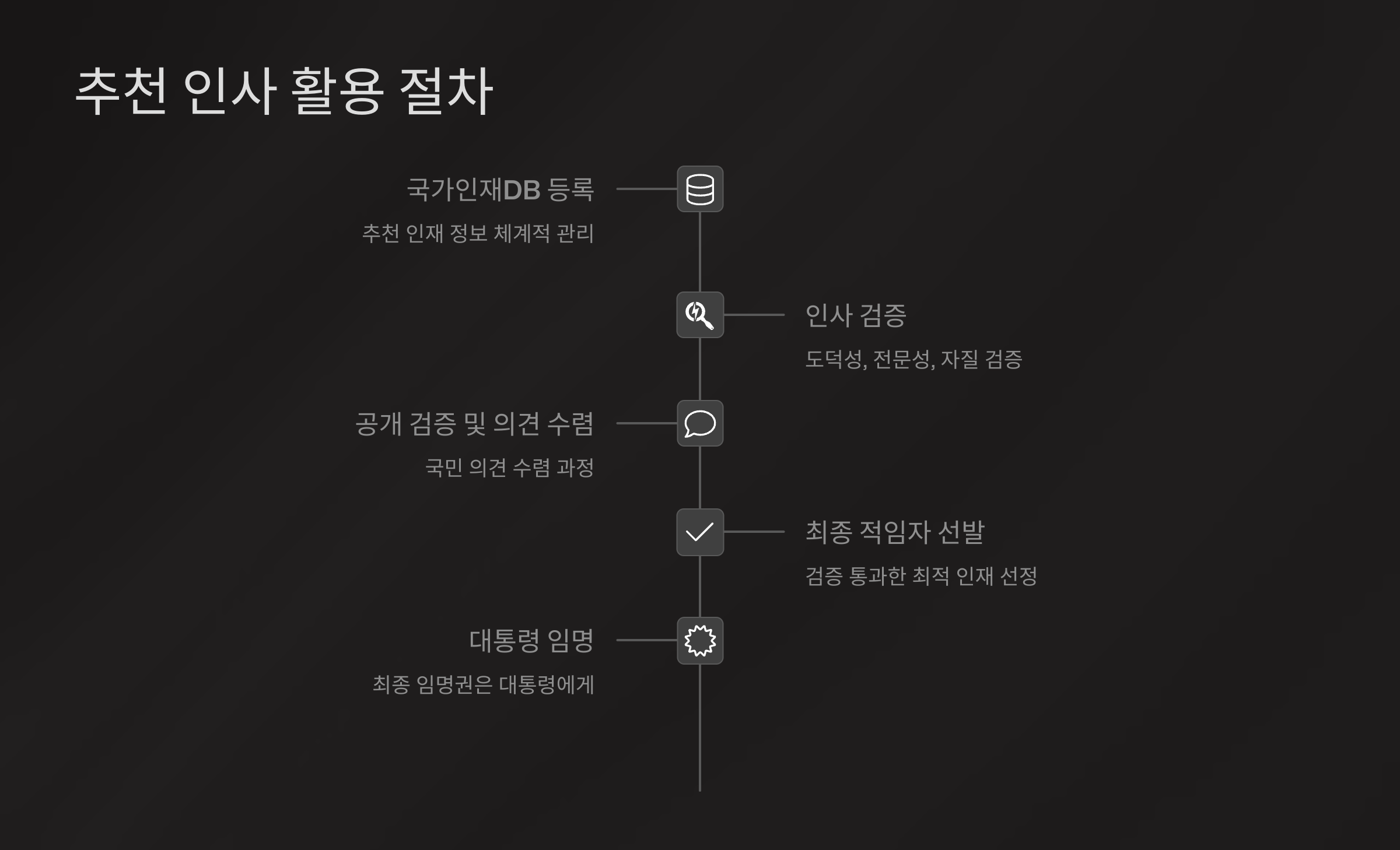 | 2단계 | 인사 검증 (도덕성, 전문성, 자질 등) |